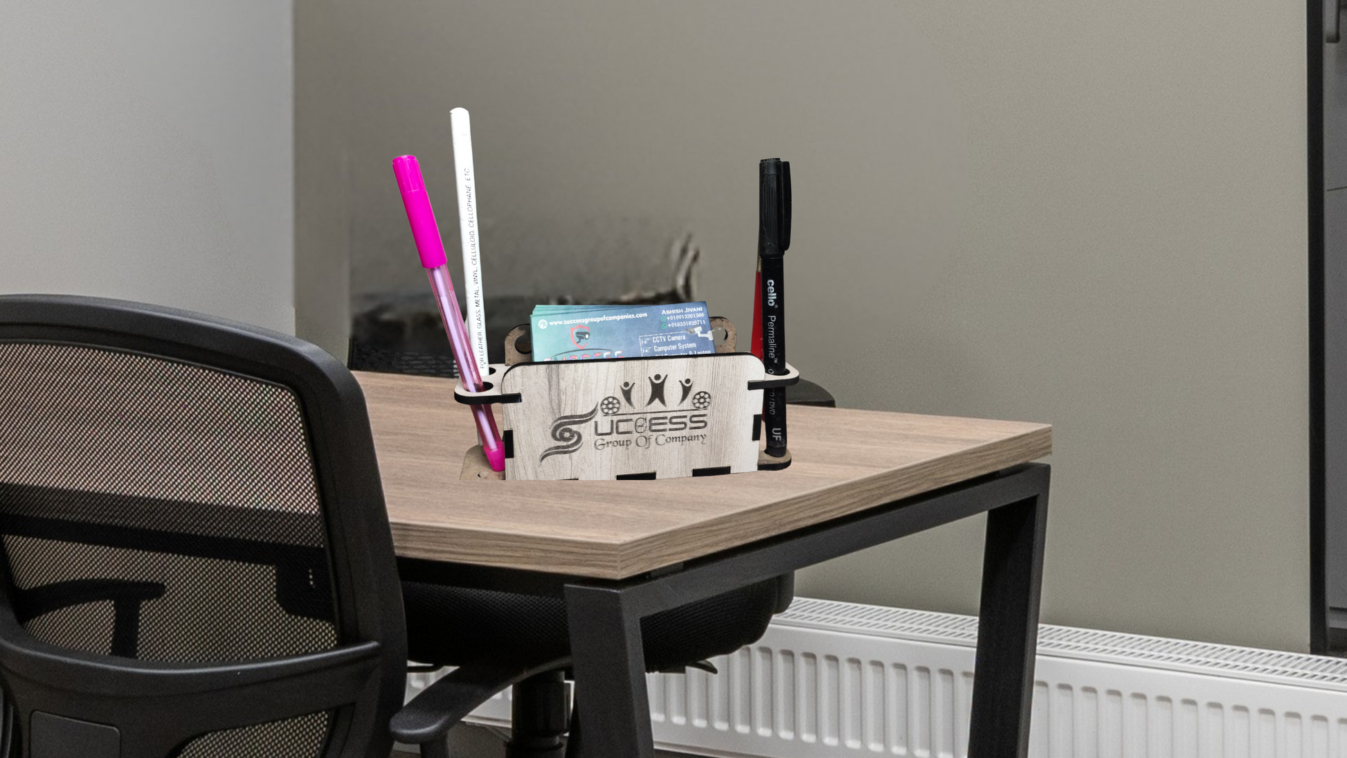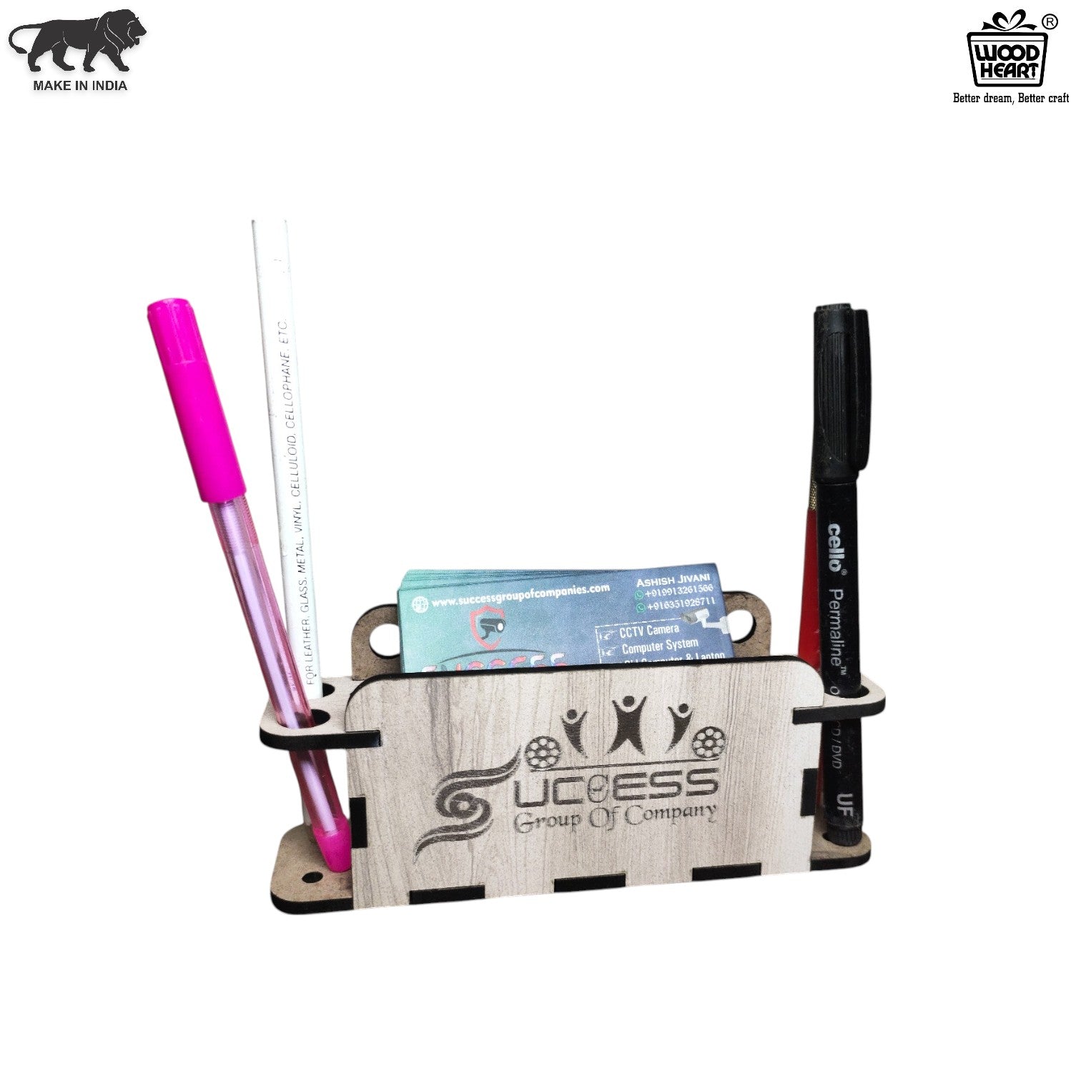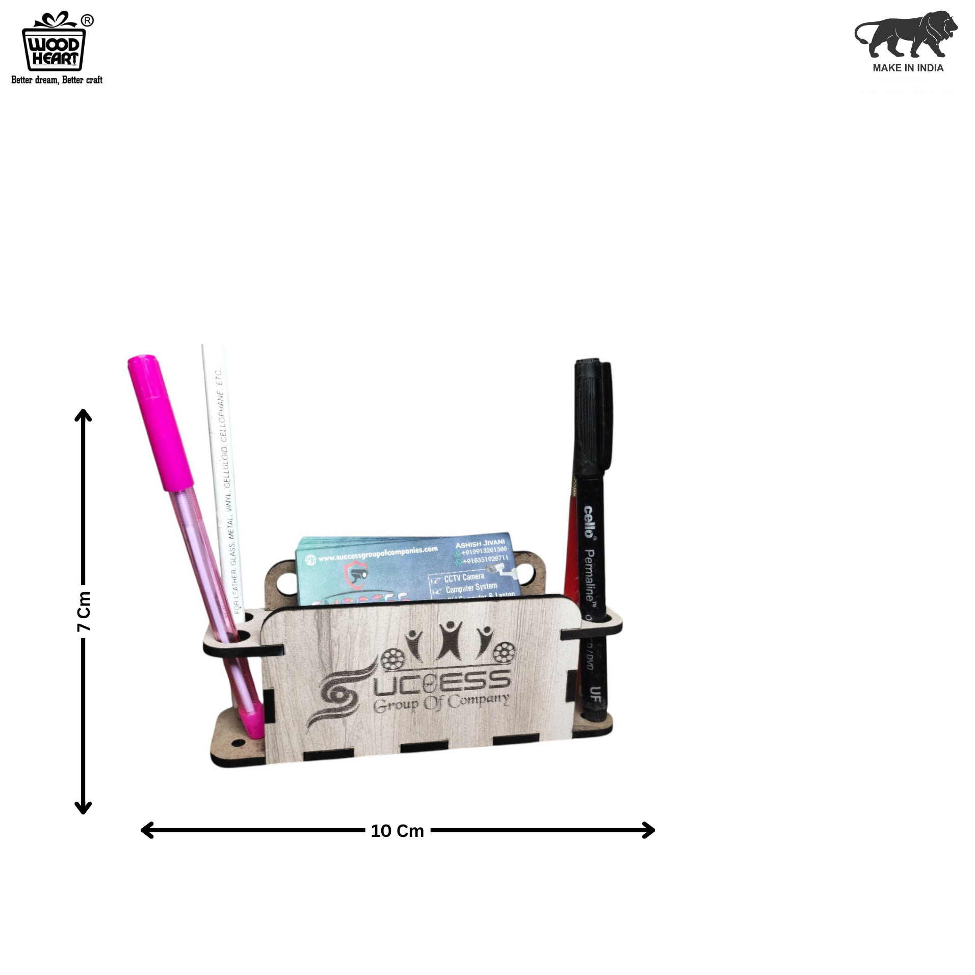 Upgrade your workspace with the WoodHeart Compact Wooden Pen & Business Card Holder – Signature Edition. Designed for simplicity and functionality, this stylish desktop essential offers dedicated slots for pens, pencils, and visiting cards. Its space-saving design and premium laser-engraved branding make it perfect for offices, startups, or promotional gifting.
