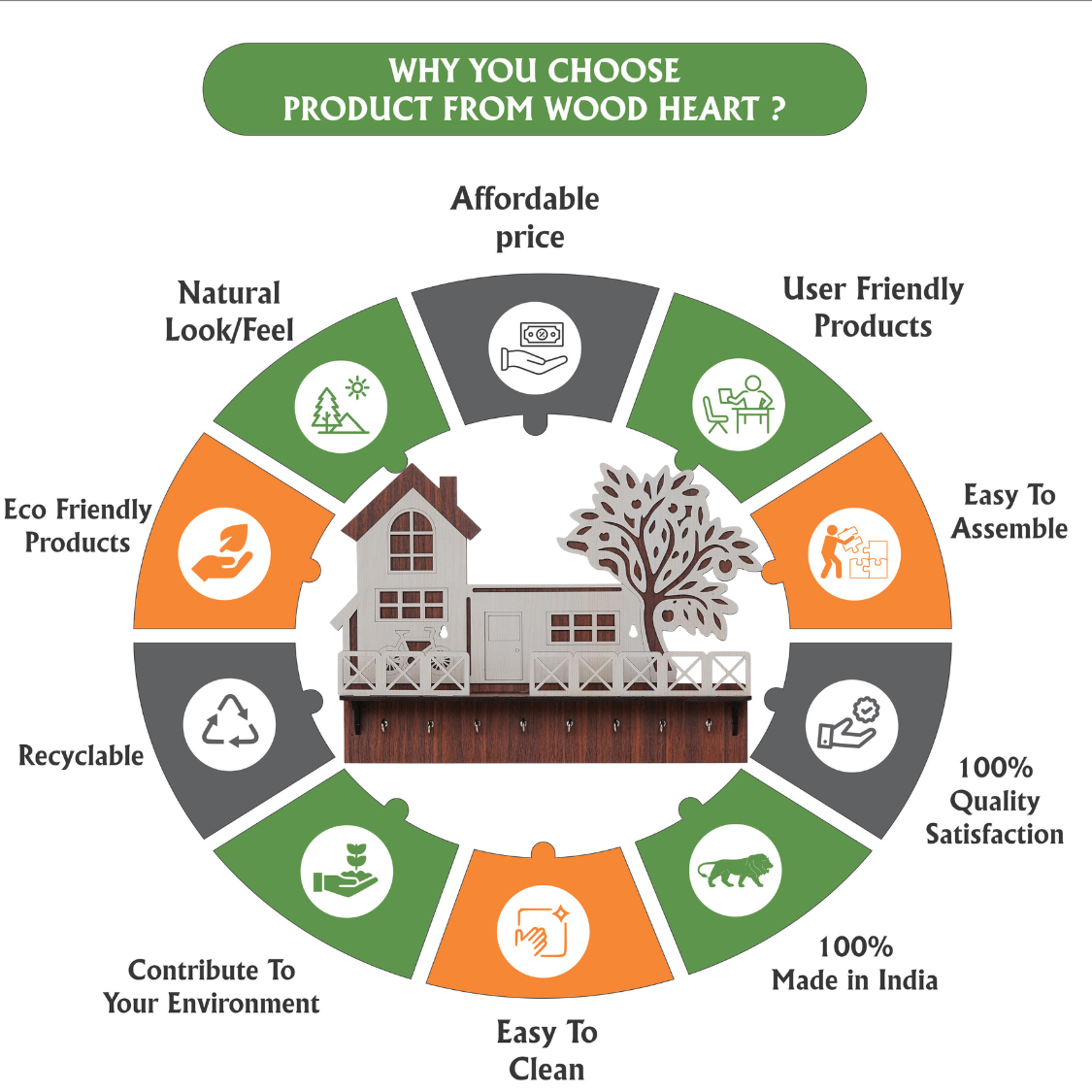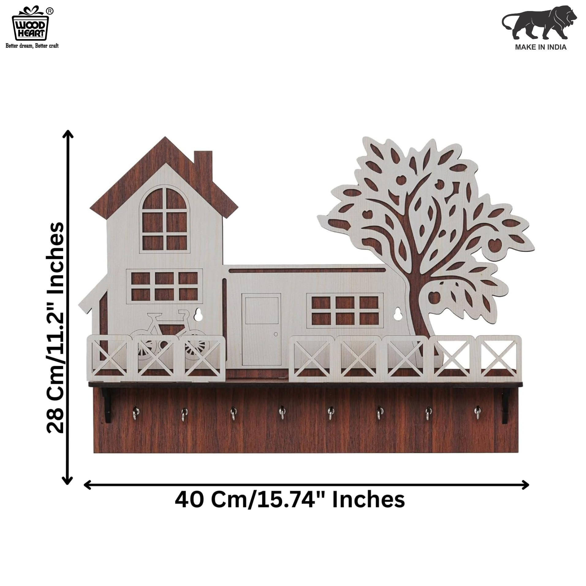 Add warmth and charm to your entryway with the WoodHeart “Dream Home” Key Holder, a beautifully crafted wall-mounted organizer shaped like a cozy house with a tree and bicycle. This design blends rustic appeal with modern utility, making it a perfect décor piece for any home while keeping your keys organized and within reach.