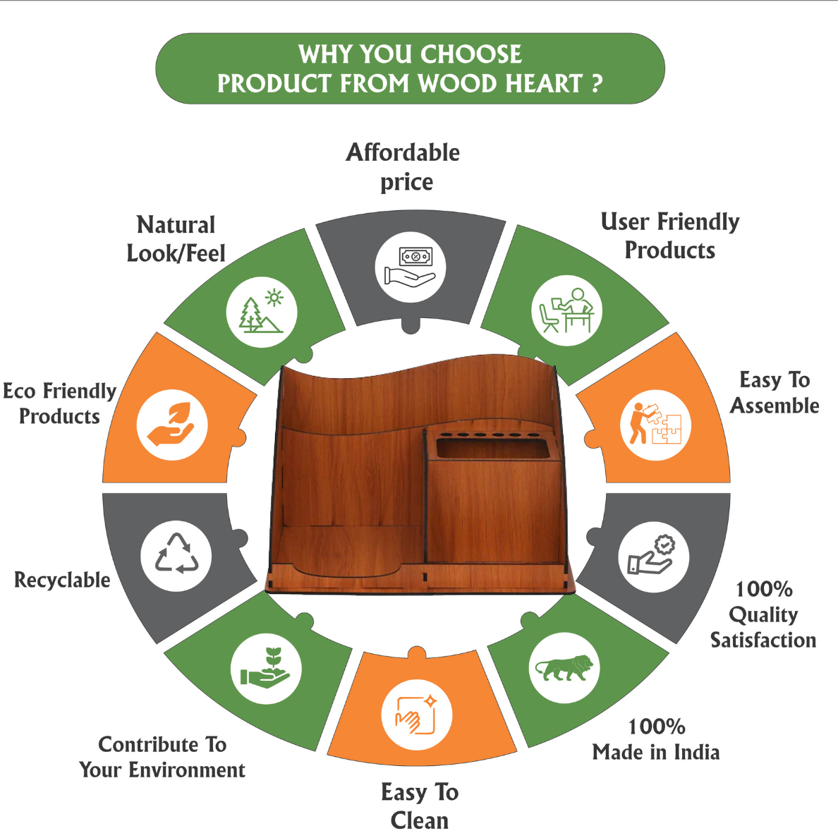 Bring elegance and order to your workspace with the WoodHeart WaveForm Wooden Desk Organizer. Featuring a unique wavy top design, this stylish organizer offers multiple compartments to store your files, stationery, and daily essentials with ease. Designed for functionality and aesthetic appeal, it adds a modern yet natural touch to any desk setup.